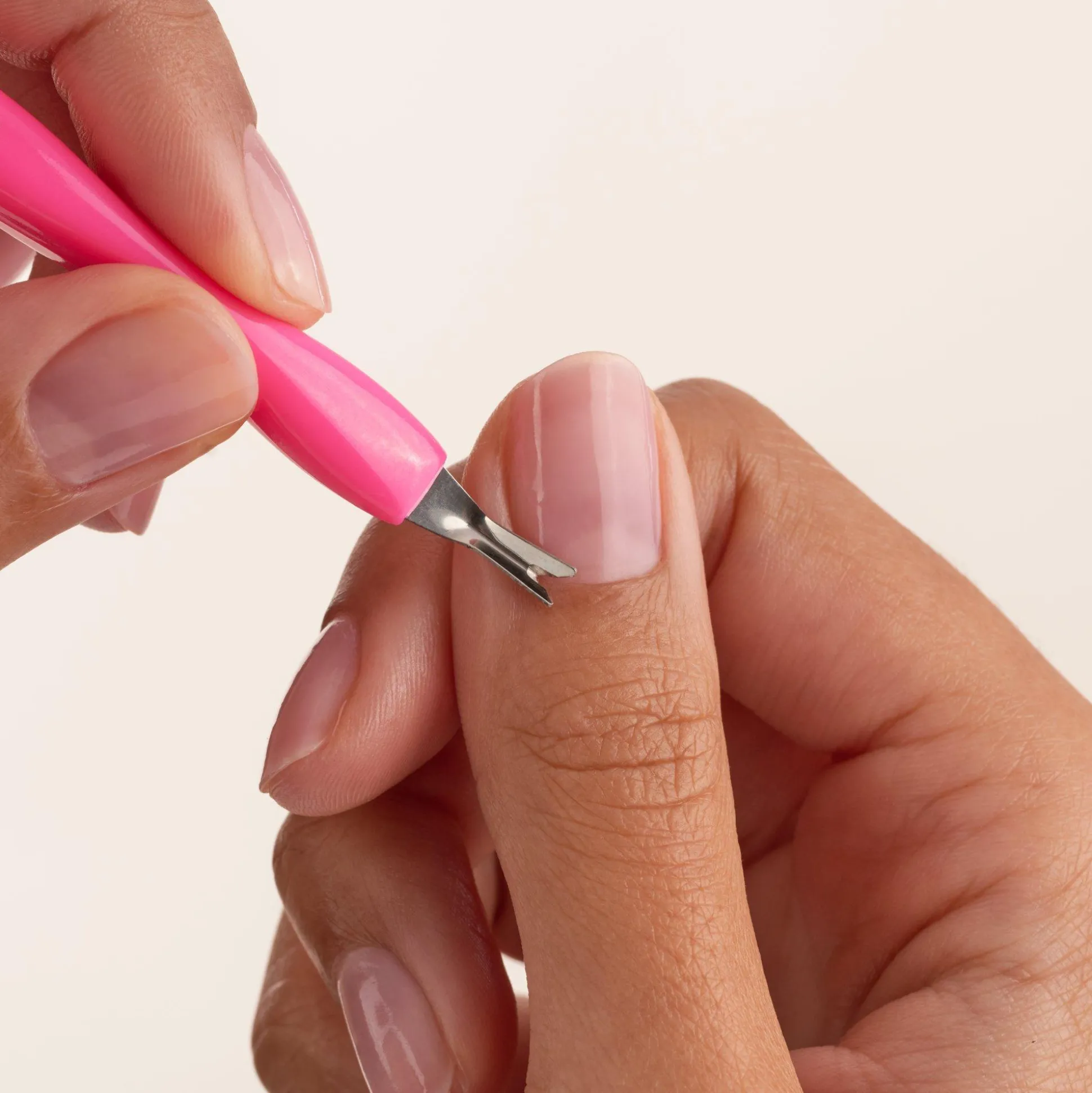 Een praktische helper voor doe-het-zelf-manicures thuis: THE CUTICLE TRIMMER. Het heeft één kant met een schuine punt en één kant met een kleine schaar. Hierdoor kun je de nagelriemen voorzichtig optillen en ze vervolgens voorzichtig bijknippen. De manicuretool voor het verwijderen van nagelriemen wordt geleverd in een verpakking met een papieren achterkant van 100% gerecycled papier.